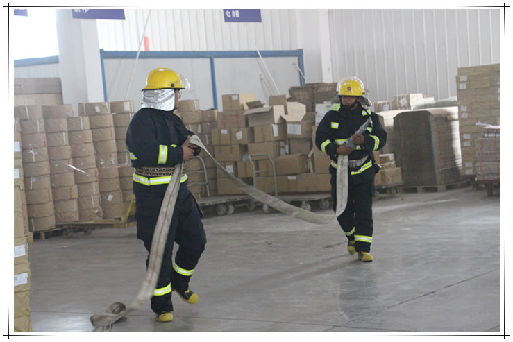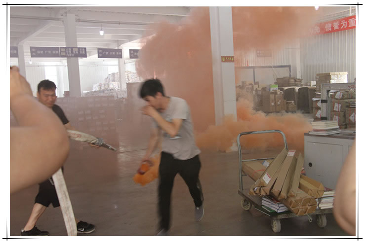 上午10點(diǎn)30分,一股濃煙從庫房內(nèi)驟然冒起,隨著急促的火警鈴聲響起,疏散逃生消防演練正式開始,庫房各崗位工作人員立即停止手頭的工作,捂住口鼻,彎腰前進(jìn),逃離“火場”,迅速有秩地前往安全地帶撤離。與此同時(shí),庫房相關(guān)負(fù)責(zé)人員撥打消防報(bào)警電話,等待消防隊(duì)的到來。經(jīng)過幾分鐘的等待,消防車緊急開動至庫房處,進(jìn)行出水救火模擬演練。最后,庫房全體員工集合完畢,安全“脫險(xiǎn)”。
